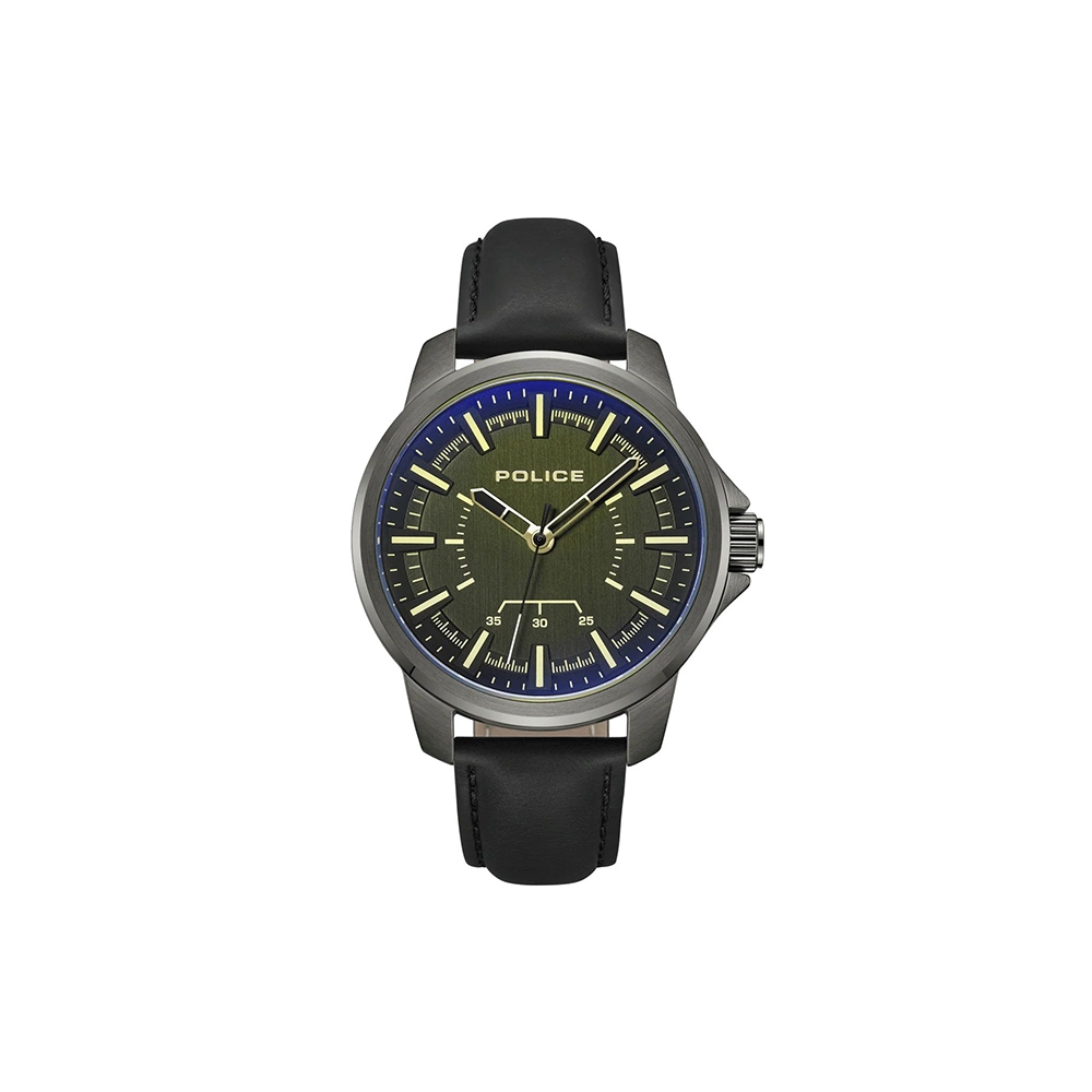 Size 44 mm Material Stainless steel Glass Mineral Band Leather Water Resistance 5 ATM